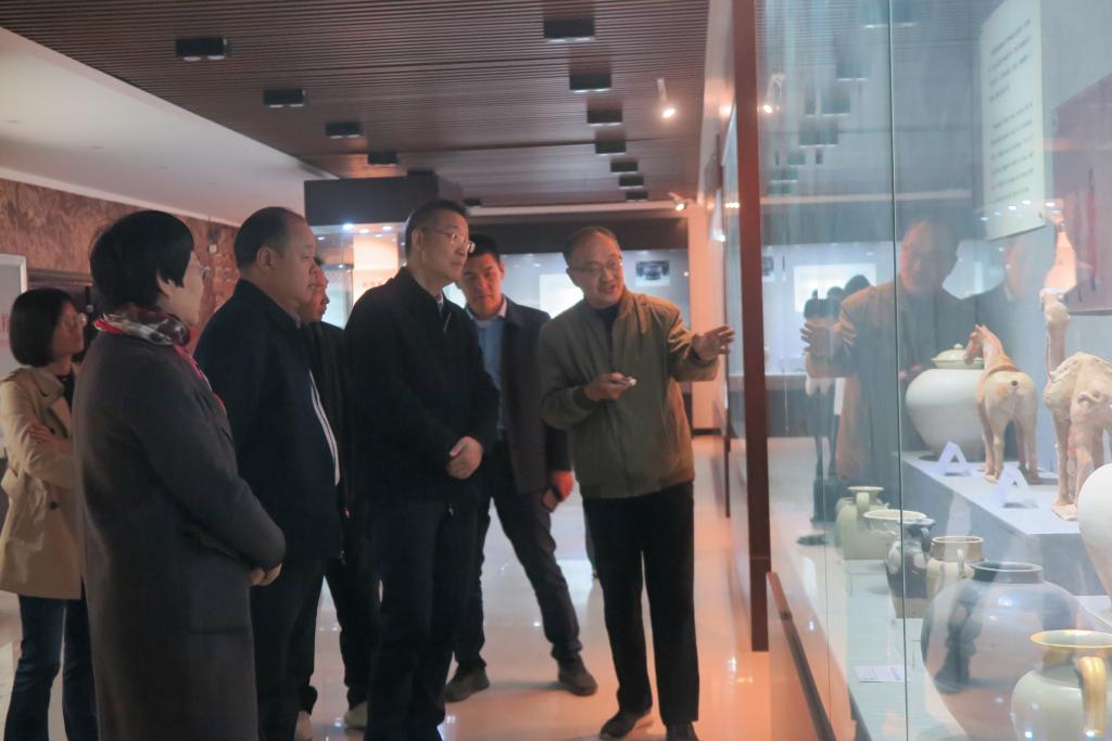 本站訊 3月20日下午,杭州市社會科學界聯合會黨組書記、主席、市社會科學院院長周國如等一行,在開封市社會科學界聯合會黨組書記趙海燕及黨組成員、副主席朱虹的陪同下,到我校大觀博物館進行了調研考察。 在此次考察中,魏躍進教授匯報了大觀博物館依托河南省社科普及基地、河南省非物質文化遺產研究基地以及河南省示范性勞模與工匠人才創新工作室等多元化文化傳承與創新育人平臺,立足高校、積極服務社會方面的工作成果。大觀博物館緊密圍繞河南文旅文創融合發展戰略,深入挖掘利用館藏宋代陶模范等歷史文化資源,致力于文化傳承與創新。同時,博物館還積極開展社會科學普及活動,為公眾提供了解和學習傳統歷史文化的重要平臺。 周國如主席對大觀博物館的建設成果以及宋代陶模范的研究給予了高度評價。他對大觀博物館育人平臺的建設與發展提出了建議,希望博物館能夠繼續發揮資源優勢,為文化傳承與社科普及做出更大的貢獻。此外,周國如主席還就杭州市文化機構與大觀博物館之間開展兩宋文化交流等事宜提出合作意向,以共同推動兩地文化的交流與發展。