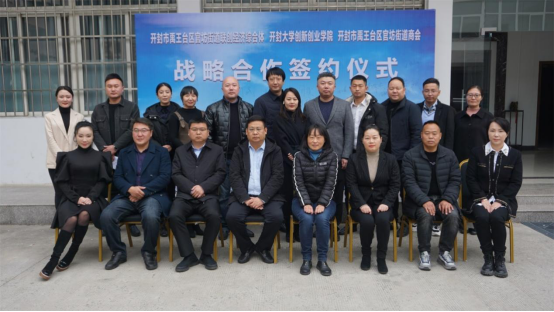12月9日下午,“開封大學創新創業學院”“開封市禹王臺區官坊街道聯創經濟綜合體”“開封市禹王臺區官坊街道商會”戰略合作簽約儀式,在禹王臺區官坊街道聯創經濟綜合體二樓會議室舉行。
