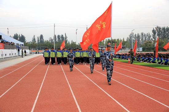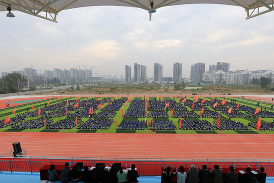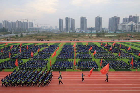 副校長趙輝代表學校表達了對承訓部隊的感謝和敬意。向參加軍訓的各位老師表示誠摯的慰問!向圓滿完成軍訓任務的新生表示熱烈的祝賀!并對5000余名新同學提出殷切希望,希望同學們保持和鞏固軍訓的成果,牢記學校“明德、勵學、篤行、創新”的校訓,牢記“愛祖國、懂禮儀、會勞動、有責任、精技藝”的要求,牢記宋校長在開學典禮上送給大家的兩把金鑰匙——創新和勤奮,用青春和熱血,鋪就一條通往人生理想的成功之路。