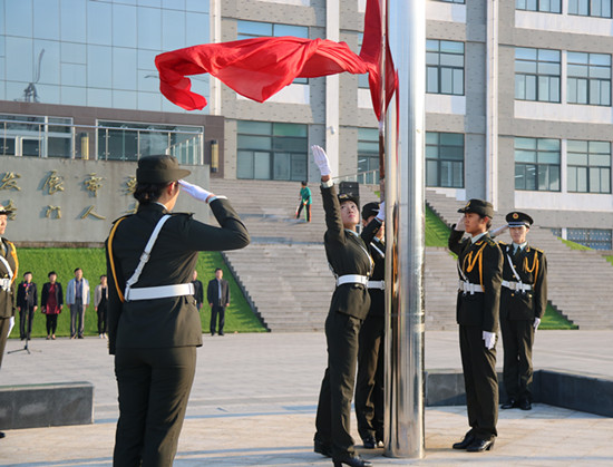 本站訊 9月29日早上,我校在大觀廣場隆重舉行2016級新生升國旗儀式。校黨委副書記儲建新、校工會主席成芳出席了升旗儀式,全體教官、軍訓團團長、我校黨委辦公室、黨委組織部、宣傳部、學工部、校長辦公室、保衛處等部分職能處室的負責人、各學院黨總支書記、副書記、新生輔導員及5000余名2016級新生參加了此次升國旗儀式。升國旗儀式由校團委副書記楊艷麗主持。