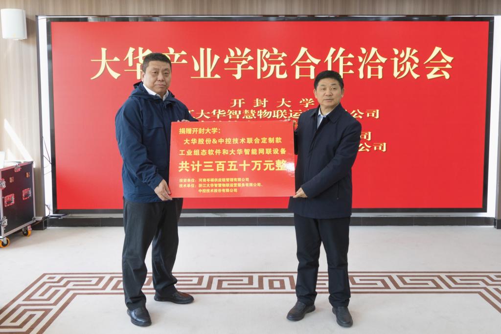 浙江大華智慧物聯運營服務有限公司、河南岑碩供應鏈管理有限公司技術單位和中控技術股份有限公司共同向開封大學捐贈價值350萬的工業組態軟件和大華智能網聯設備,為學校的實踐教學與科研創新提供了有力支持。