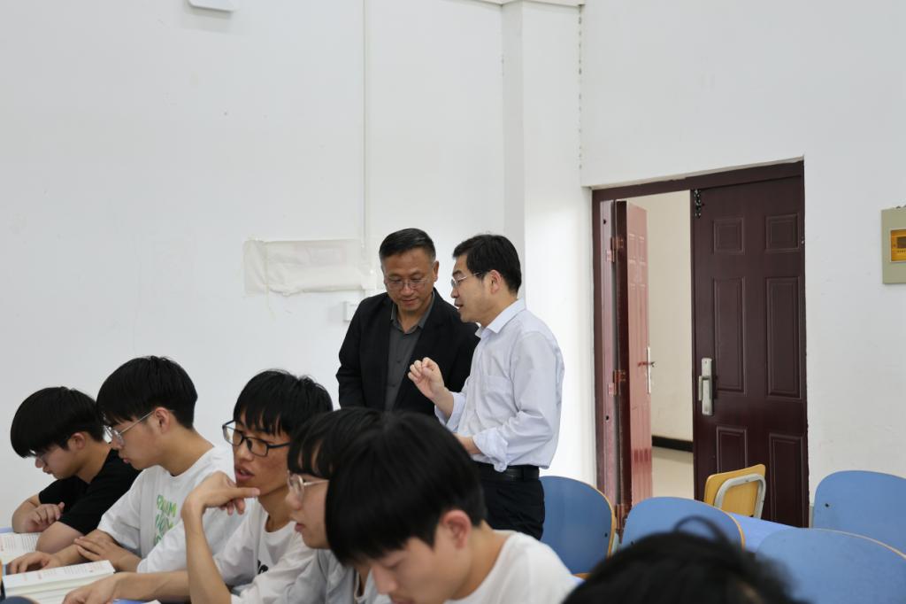 本站訊 4月29日下午,省高校思政課“大聽課、大調研”第五調研組專家漯河職業(yè)技術學院院長薛存心、許昌學院馬克思主義學院院長周耀宏、河南機電職業(yè)學院馬克思主義學院院長涂凱迪一行蒞臨我校聽課調研。校黨委副書記張合、馬克思主義學院班子成員陪同調研。