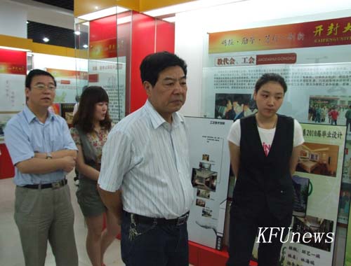 開幕式結束后,校領導和嘉賓在工美學院領導的陪同下觀看了畢業設計作品展,莫書記、拜校長對學生作品給予了高度評價,同時對畢業生提出了希望,并為本次作品展題詞留念。