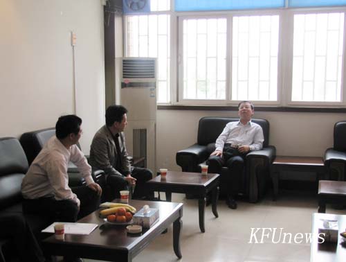 校長拜五四在行政樓二樓接待室與河大教務處的檢查人員進行了親切交談,對河南大學多年來對我校的指導和幫助表示感謝,并希望以后進一步鞏固合作成果,繼續給予更多指導和更好的管理經驗,使聯辦本科專業辦得更好。