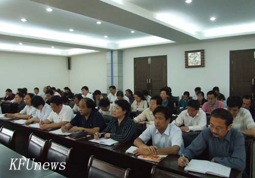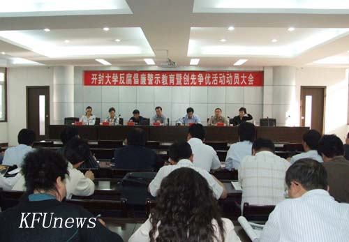 校黨委組織部部長秦雪峰在會上宣讀了《關于成立開封大學創先爭優活動領導小組的通知》和《中共開封大學委員會關于在全校基層黨組織和共產黨員中深入開展創先爭優活動的實施方案》。