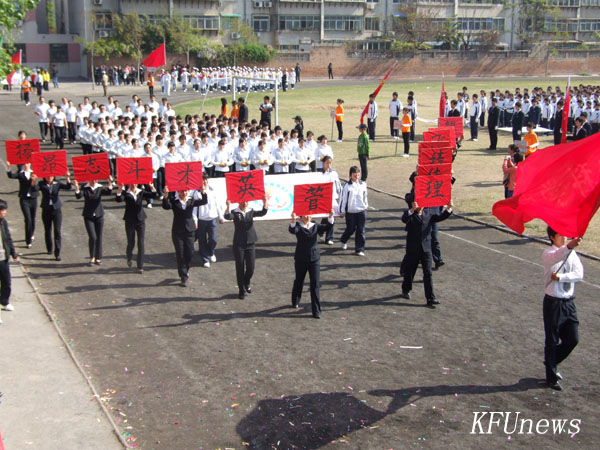 開幕式上,13個院部進行了精彩的入場隊列表演,同時還進行了大型健美操表演。那整齊劃一的隊列,激情飛揚的場面體現(xiàn)了開大人健康、奮進、快樂、向上的精神風貌。