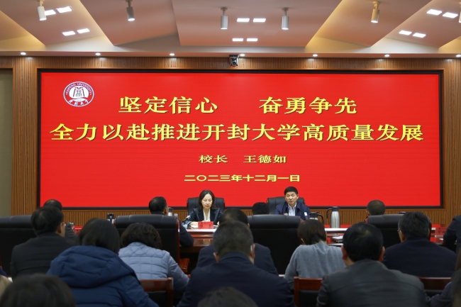會議號召,全校上下要在校黨委的堅強領導下,高舉習近平新時代中國特色社會主義思想偉大旗幟,以過硬能力和作風,將目標付諸落實,把藍圖化為現實,譜寫新時代開封大學更加出彩的絢麗篇章。