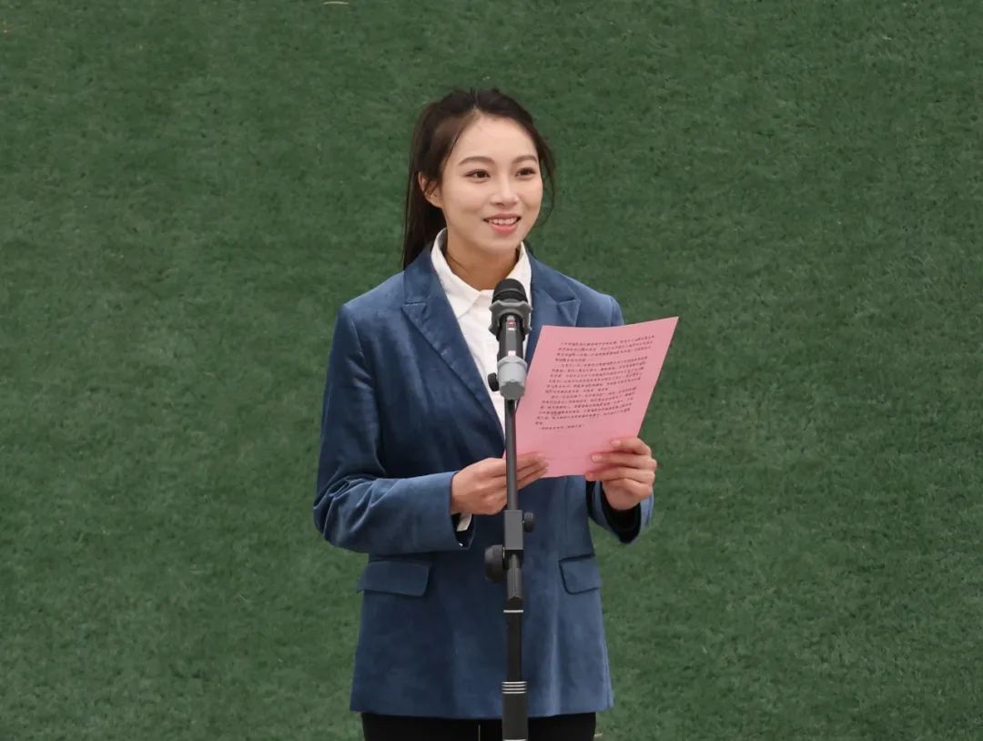 升國旗儀式上,旅游學院2022級學生孫夢璐、科研外事處處長吳璽玫分別作為學生代表和教師代表進行發言。