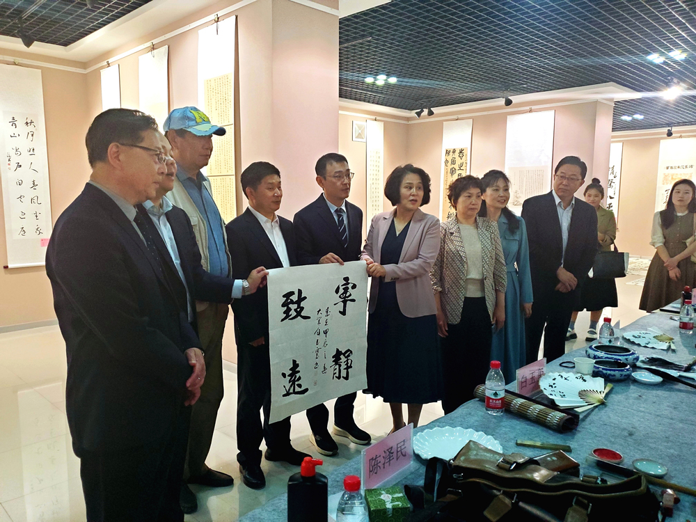 4月26日上午,開封市社科聯(lián)聯(lián)合名城書畫院,組織我市書畫家走進開封大學(xué),開展書畫名家進校園活動,并與來自韓國韓中人文交流協(xié)會書法家進行交流。市社科聯(lián)黨組書記、主席趙海燕,開封大學(xué)黨委委員會、副書記、校長王德如,開封大學(xué)黨委委員、工會主席成芳,名城書畫院院長白玉璽、秘書長趙孝斌和開封大學(xué)藝術(shù)學(xué)院師生共同參加活動。