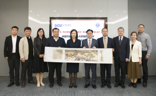 4月29日,訪問團到韓國大邱加圖立大學進行訪問,校長成漢基教授、國際處尹鍾寅處長、國際交流中心主任宋斗鎭等熱情接待。