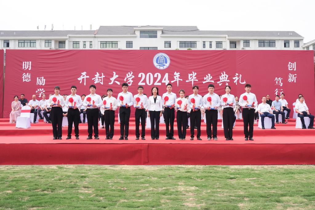 副校長李治宣讀開封大學2024屆畢業生畢業資格審查結果,6715名畢業生符合畢業條件,順利畢業。副校長曾小平宣讀2024屆優秀畢業生表彰決定。