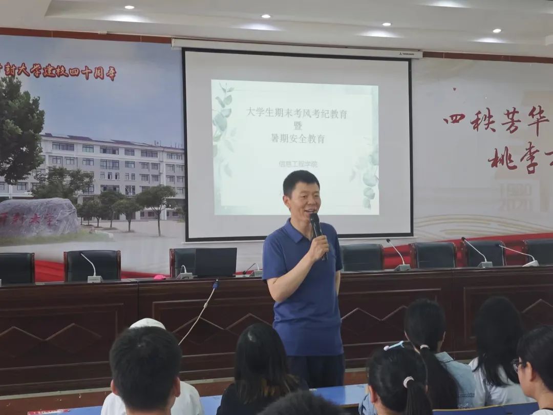 2024年6月24日至28日,信息工程學院(軟件職業技術學院)開展暑期安全教育主題班會,學院學生工作辦公室主任、團總支書記賀鈺對2022級、2023級各班級進行了理想信念教育、職業規劃教育、安全教育等方面的主題教育,引導青年學子在校期間要有明晰的職業規劃和奮斗目標,在提升好安全意識的同時注重體質能力的鍛煉。各年級輔導員老師們,對同學們的職業生涯規劃、個人習慣養成、安全防護意識和如何做好自律進行了詳細的講解,對同學們如何度過一個充實、安全、快樂的暑期做了具體的要求。