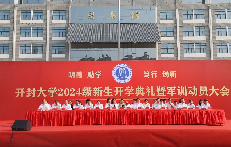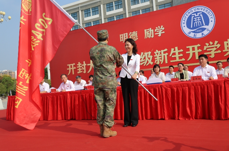 開封網(wǎng)9月11日訊 全媒體記者宋獻(xiàn)霞報(bào)道   9月9日,開封大學(xué)2024年新生開學(xué)典禮暨軍訓(xùn)動(dòng)員大會(huì)在該校大觀廣場(chǎng)隆重舉行。開封大學(xué)黨委書記譚貞、校長(zhǎng)王德如出席會(huì)議。譚貞向軍訓(xùn)團(tuán)授旗,并宣布開封大學(xué)2024級(jí)新生軍訓(xùn)開營(yíng)。