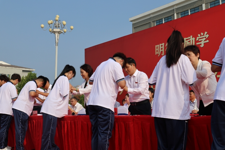 伴隨著雄壯的國(guó)歌聲,全體師生肅立注目,大會(huì)正式拉開帷幕。該校領(lǐng)導(dǎo)為新生代表佩戴校徽。土木建筑工程學(xué)院黨總支書記李軍教授、2022級(jí)學(xué)生朱保豪、2024級(jí)學(xué)生楊嘉彤分別作為教師代表、高年級(jí)學(xué)生代表和新生代表發(fā)言。全體新生以響亮的口號(hào)“請(qǐng)黨放心、強(qiáng)國(guó)有我、拼搏奮斗、為校爭(zhēng)光”表達(dá)了昂揚(yáng)奮進(jìn)、不負(fù)使命的信心和決心。大會(huì)在校歌《勇攀高峰》的激揚(yáng)旋律中圓滿落幕。
