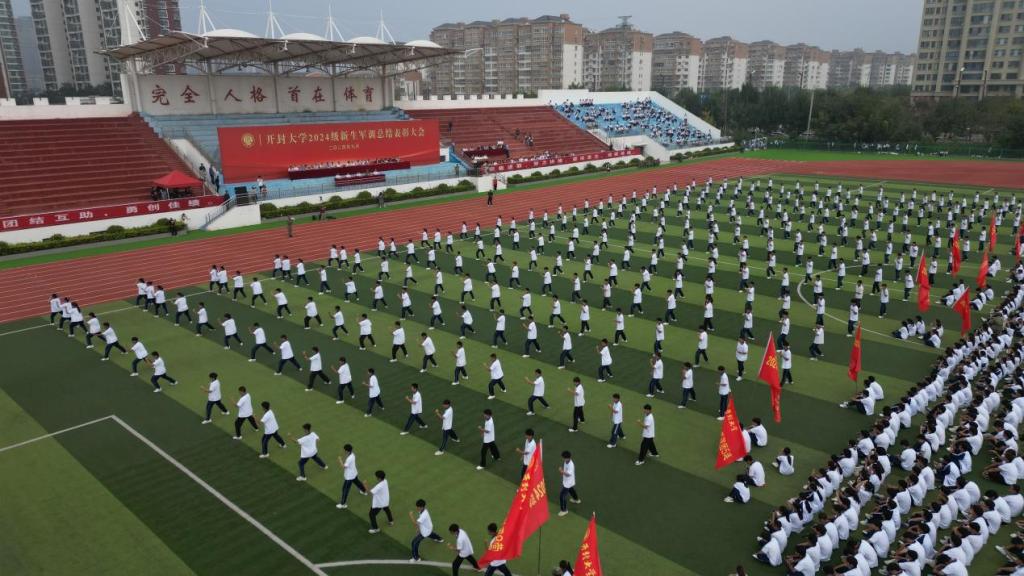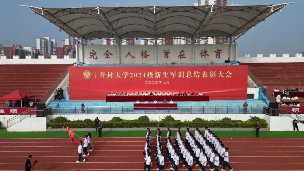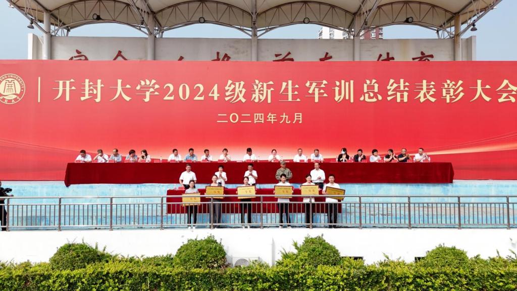 高校信息網9月22日訊 9月20日,開封大學2024級新生軍訓總結表彰大會在學校北操場隆重舉行。開封市龍亭區人民武裝部政委周峰,校領導萬是明、成芳、謝文忠、石超亭出席大會。大會由學校黨委委員、工會主席成芳主持。