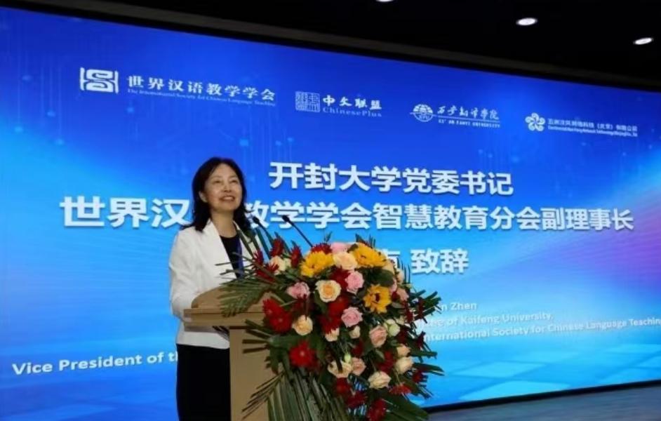 開(kāi)封大學(xué)黨委書(shū)記譚貞教授作為中文聯(lián)盟副主席、世界漢語(yǔ)教學(xué)學(xué)會(huì)國(guó)際中文智慧教育分會(huì)副理事長(zhǎng)出席開(kāi)幕式并致辭。譚貞教授在致辭中強(qiáng)調(diào)了國(guó)際中文教育作為人文溝通交流的橋梁,對(duì)加強(qiáng)文化理解、經(jīng)濟(jì)合作、世界和平與科創(chuàng)發(fā)展的重要意義。她指出,隨著大數(shù)據(jù)、人工智能等技術(shù)的飛速發(fā)展,數(shù)字化已成為教育現(xiàn)代化的必然趨勢(shì)。本次研討會(huì)的召開(kāi)和研究院的成立,將為全球中文教育的現(xiàn)代化進(jìn)程注入新的動(dòng)力。她期待與會(huì)專家學(xué)者能夠匯聚眾智,共同把握數(shù)字化教育的前沿趨勢(shì),探索最佳實(shí)踐路徑,構(gòu)建更加開(kāi)放、包容、共享的國(guó)際中文教育未來(lái)。