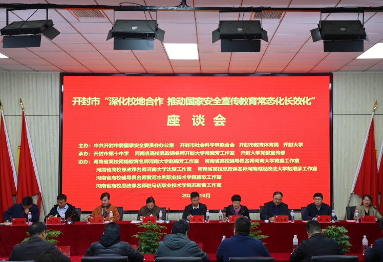 座談會上,河南省高校輔導員名師河南大學黃鑫工作室負責人、河南大學黨委統(tǒng)戰(zhàn)部副部長黃鑫,河南省高校輔導員名師黃河水利職業(yè)技術學院管欣工作室負責人、黃河水利職業(yè)技術學院后勤管理服務中心黨總支書記管欣,河南省高校思政課名師開封大學常素芳工作室成員、河南省大中小學思政課一體化建設工作聯(lián)盟開封片區(qū)專家委員、開封大學馬克思主義學院副院長朱淼,市金明中小學副校長范一龍,鼓樓區(qū)教育股股長丁穎等河南省高校思政名師工作室負責人與成員以及中小學教師代表先后發(fā)言,大家圍繞如何依托教育基地,持續(xù)推動國家安全宣傳教育常態(tài)化、長效化,如何強化校地合作,高質量推動國家安全教育,如何持續(xù)推動國家安全宣傳教育,凝聚國家安全共識和力量,持續(xù)推動國家安全教育的實踐路徑有哪些,如何高質量開展國家安全教育等問題暢所欲言。