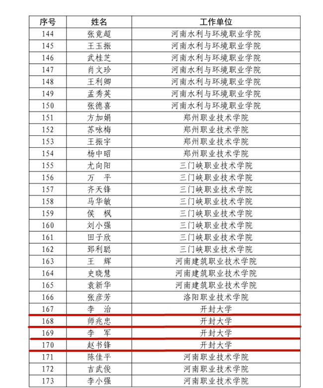 本站訊 近日,河南省教育廳、河南省人力資源和社會保障廳發布了《河南省教育廳河南省人力資源和社會保障廳關于公布2021年河南省職業院校省級名師和省級骨干教師培育對象名單的通知》(教職成〔2022〕115號)。我校李治、師兆忠、李軍、趙書鋒4位教師被評為2021年河南省職業院校省級名師培育對象,李響、劉悅、王曉婷、邊疆、蔣大山、李林6名教師被評為2021年職業院校省級骨干教師培育對象。