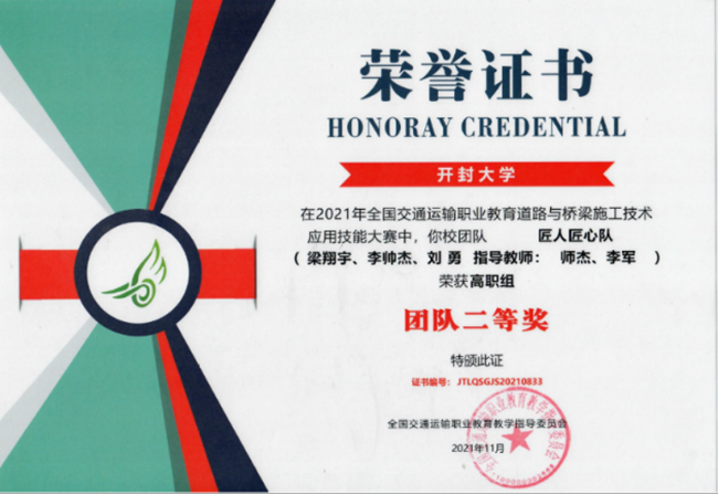 此次大賽,展示出我校建筑工程技術(shù)專業(yè)群道路橋梁工程技術(shù)專業(yè)學(xué)生良好的精神風(fēng)貌和專業(yè)技能水平,彰顯了開大人開拓創(chuàng)新、積極進(jìn)取、通力合作的團(tuán)隊(duì)協(xié)作精神,對培養(yǎng)高素質(zhì)復(fù)合型技能人才起到了積極作用,并為我校“雙高”建設(shè)做出了應(yīng)有的貢獻(xiàn)。