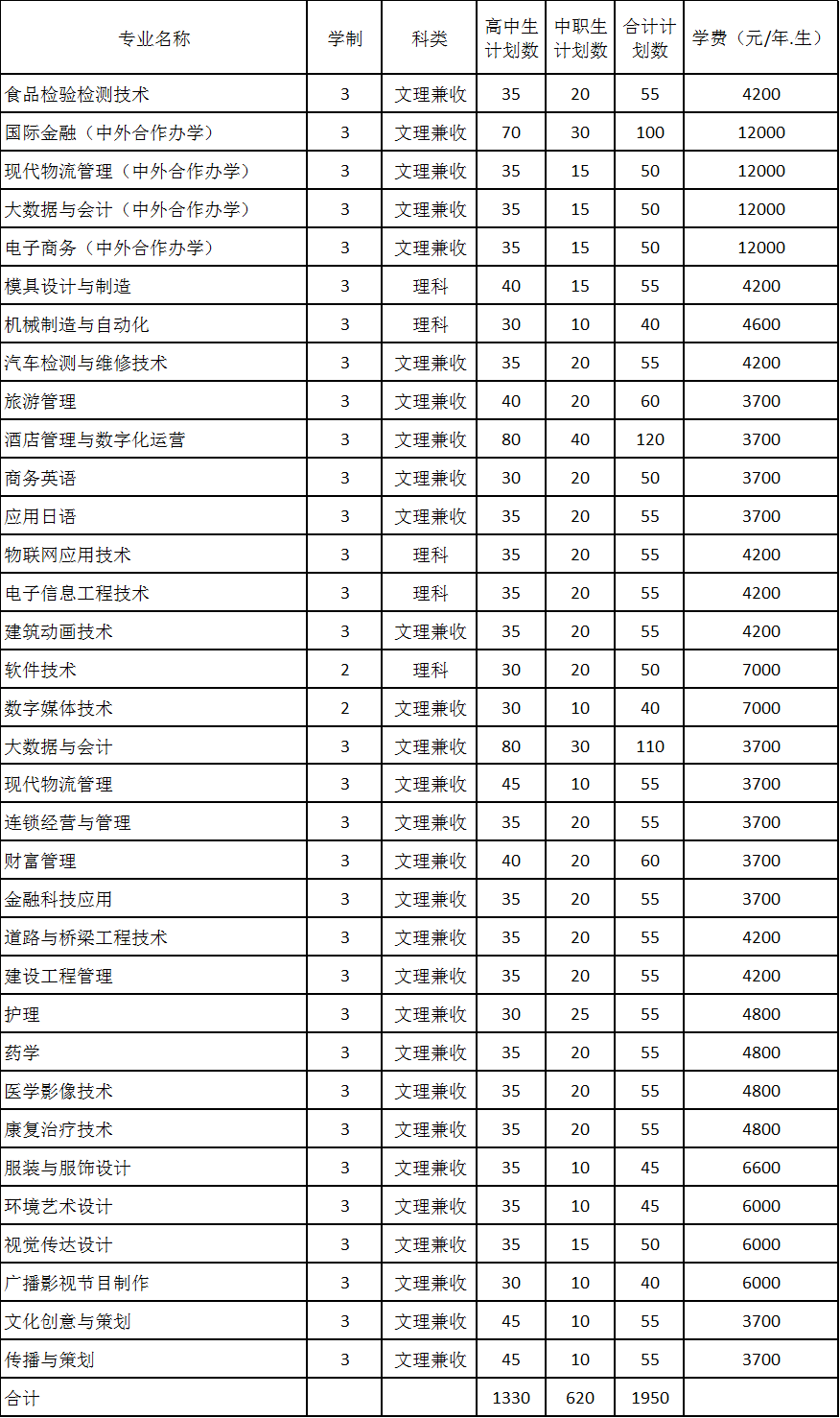 根據考生文化素質、職業技能測試成績的總分(中職生總分按照計算后執行),按普通高招考生和中職畢業生考生分開劃定最低錄取控制分數線,按所報志愿分專業從高分到低分依次錄取。同分的考生按文化素質、職業技能(職業適應性測試)、語文、數學、英語的考試成績進行依次排序錄取。根據我校生源情況,可調整招生計劃。