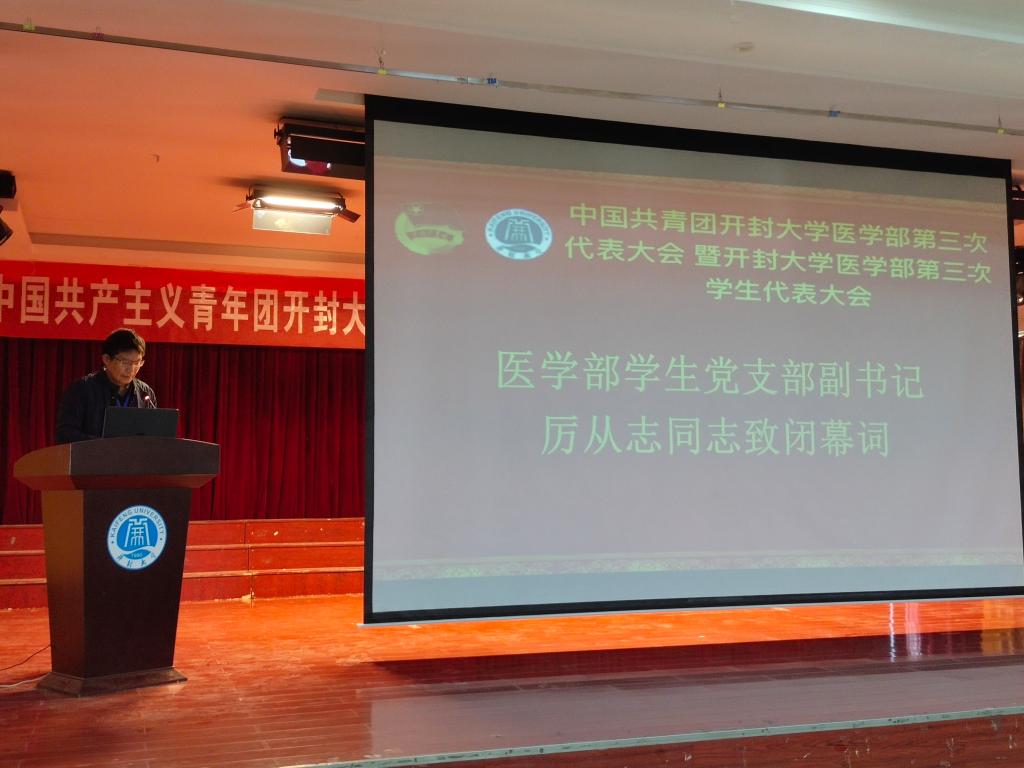 大會選舉了新一屆醫學部團總支委員會委員和書記、副書記;學生會委員與學生會主席團。期間,箏鳴社同學在計票時為代表帶來了古箏—《萬疆》,獲得了一致好評。伴隨著醫學部文體部同學帶來的《我和我的祖國》與《永遠跟黨走》,大會迎來了閉幕式。由開封大學醫學部黨支部副書記厲從志致閉幕詞,并且在大會上對新一屆委員會和全體代表提出了新的期望:牢記初心使命,勇擔時代重任,號召新一屆委員們帶領同學發揚求真務實的工作作風,牢記初心使命,抓住機遇,迎接挑戰,嚴格要求自己。彩虹和風雨共生,機遇與挑戰并存。