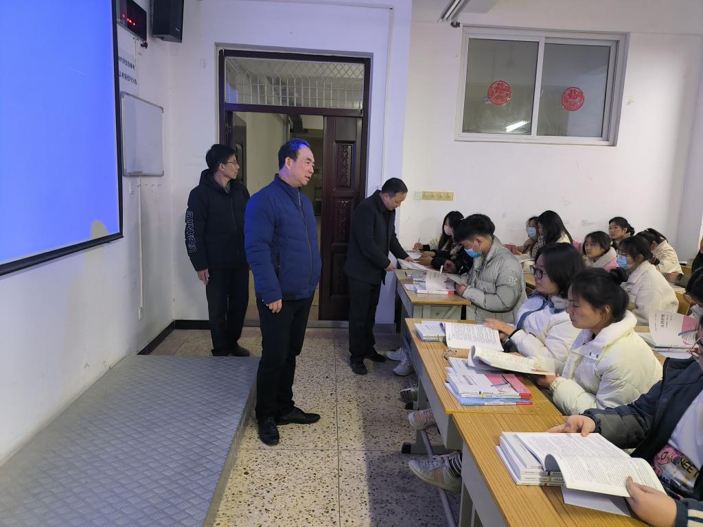 校領導曾小平、學生工作部部長付喆、醫學部黨總支書記謝旭光帶隊走進新學期各班第一次主題班會,并與同學們親切交談寒假見聞,送上了新學期的寄語。校領導曾小平囑咐同學們學校就是你們共同的家,希望你們能夠在開封大學開心學習、健康生活,強調了珍重生命,保護自身安全的重要性,最后預祝同學們在新的學期里都能夠向著理想的彼岸,收獲一路芳華。